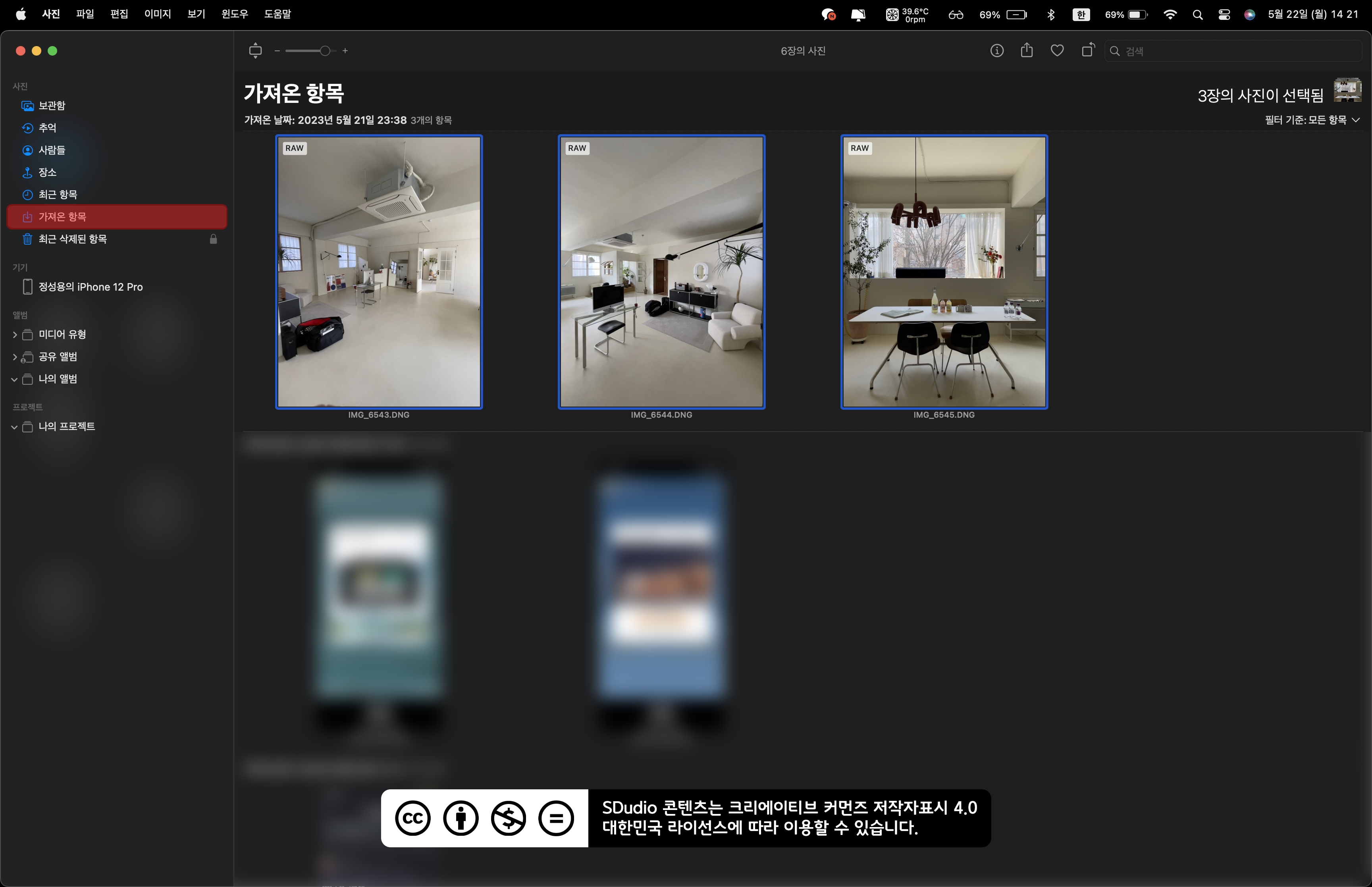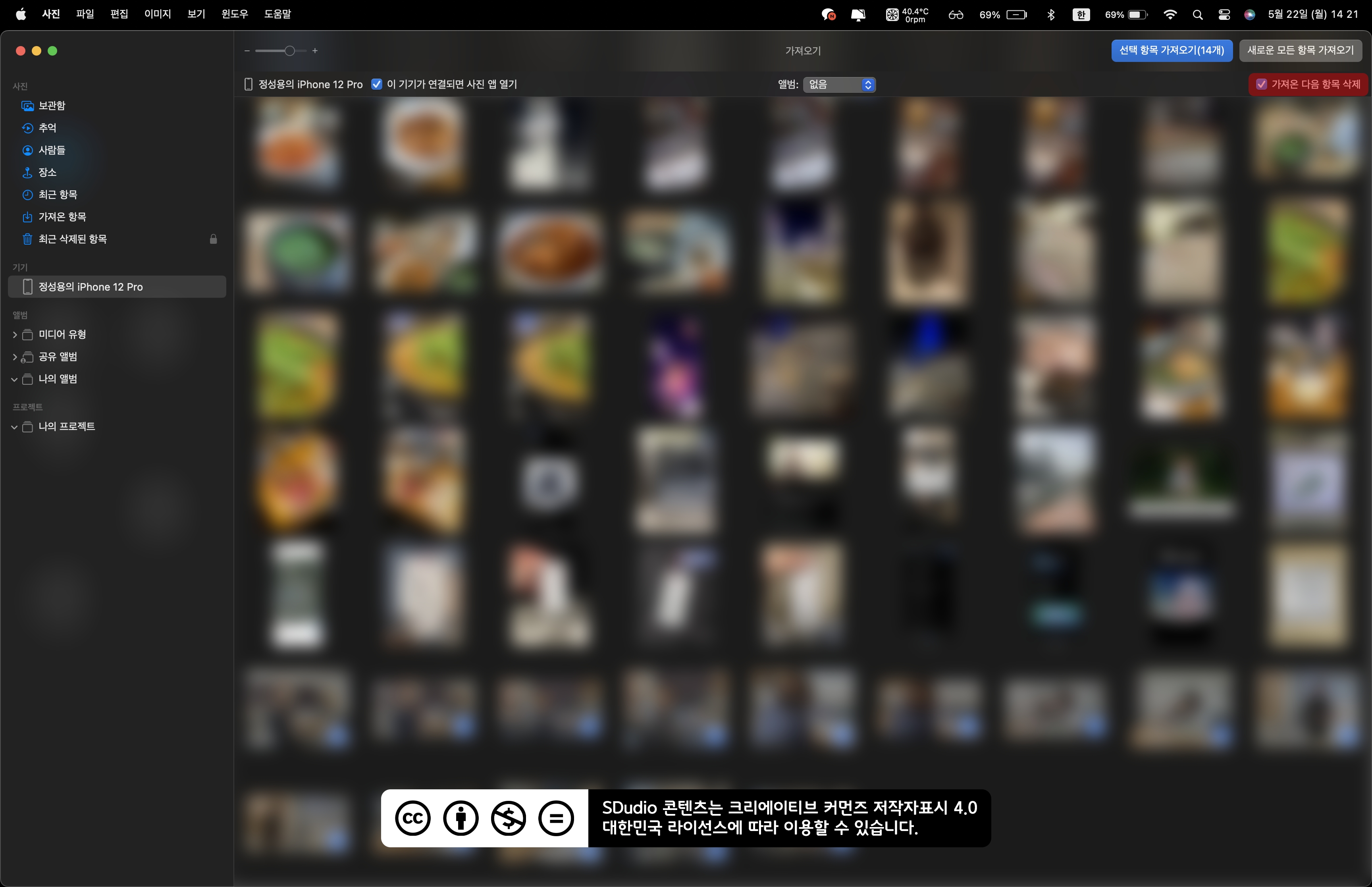 옮겨진 사진은 맥 사진앱 좌측에 ‘가져온 항목’에 표시됩니다.